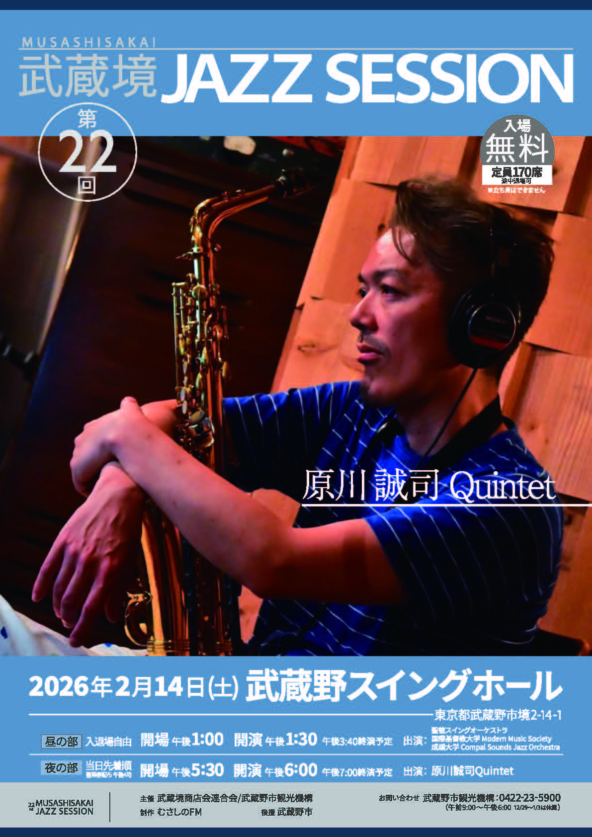 武蔵野市にゆかりのあるプロミュージシャンが出演し、武蔵境でジャズが楽しめる!ジャズファンの多い武蔵野市ならではのイベントです。