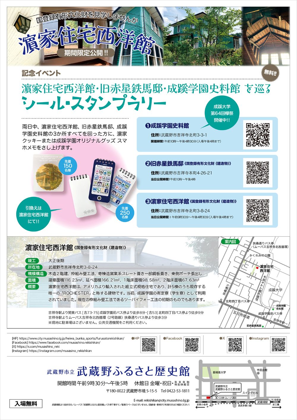 濱家住宅西洋館・旧赤星鉄馬邸・成蹊学園史料館を巡るシール・スタンプラリー