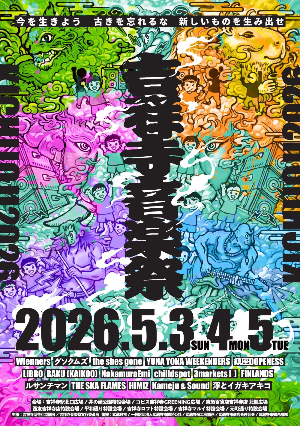 新しい感性、エネルギーみなぎるアーティストを集結した吉祥寺音楽祭を5/3~5、ゴールデンウィークに吉祥寺音全域にて開催します。