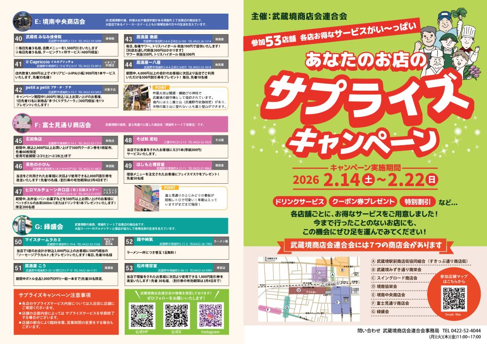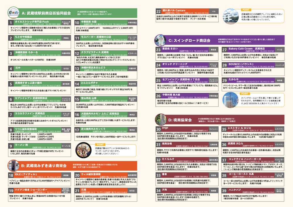 53店舗が参加し、各店舗ごとに、ドリンクサービスやクーポン券、特別割引など、お得なサービスをご用意いたしました!