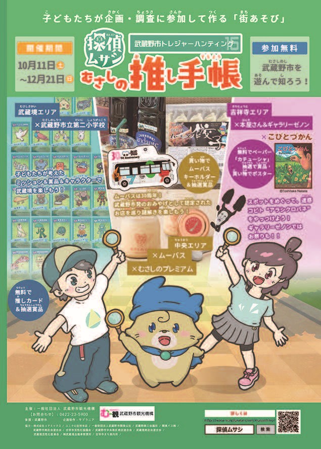 武蔵野市トレジャーハンティングは「地域」の魅力や歴史を調査する、だれでも楽しめる謎解きゲームです。「むさしの推し手帳」はミッションが用意されています!これをクリアして「むさしの推し手帳」を完成させよう!