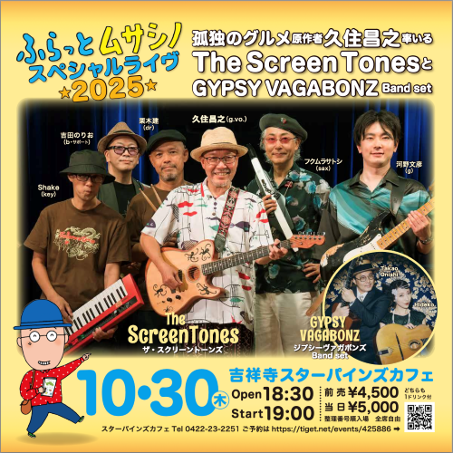 「孤独のグルメ」原作者であり⾳楽家の久住昌之さん率いるバンド「The Screen Tones」および「GYPSY VAGABONZ」による⾳楽ライブを実施。