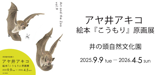 井の頭自然文化園(園長 杉野隆)では、Art and the Zoo vol.9として絵本作家のアヤ井アキコ氏の作品を取り上げた特設展「アヤ井アキコ 絵本『こうもり』原画展」を彫刻館にて開催します。