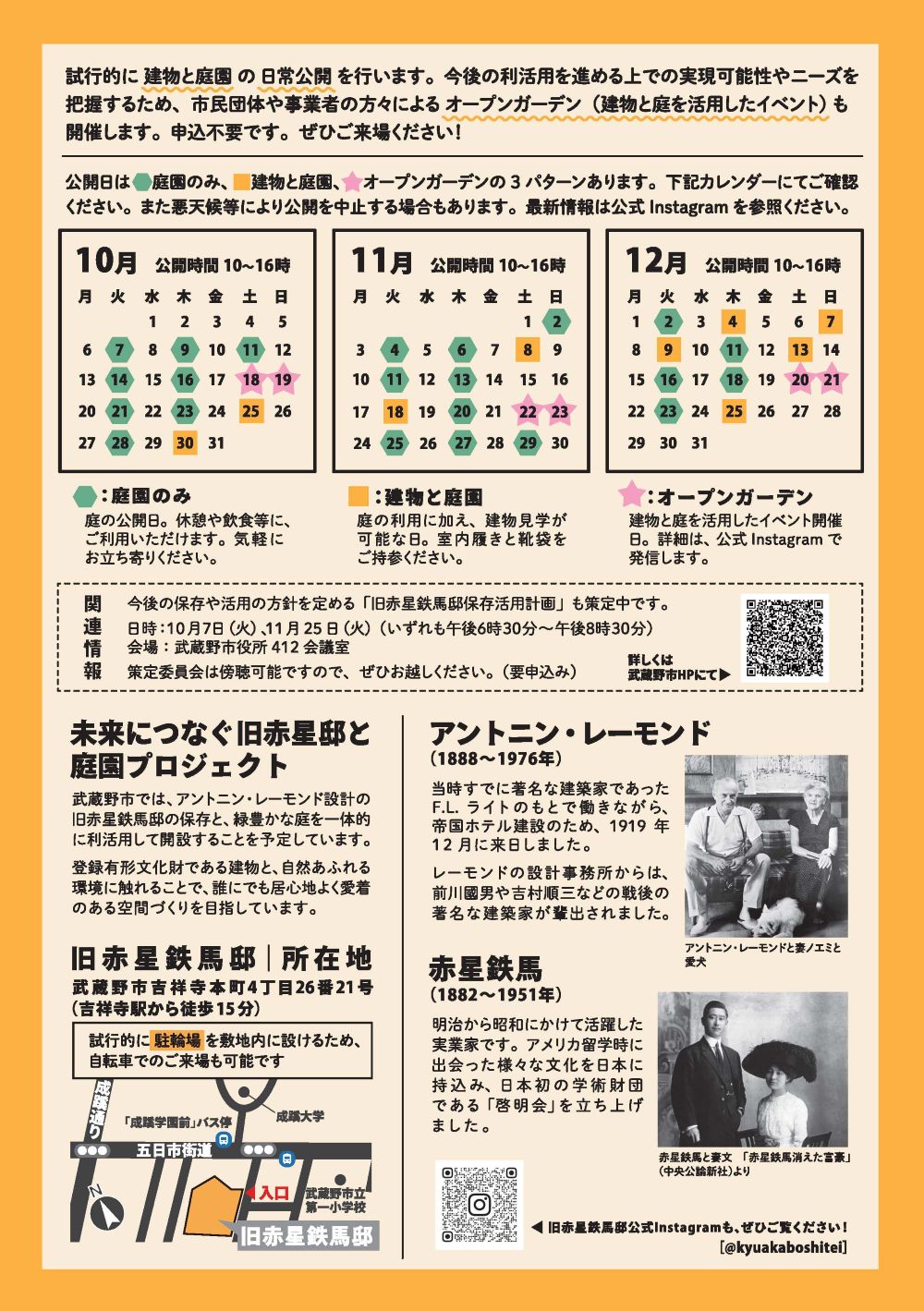 令和7年10月7日(火曜日)から12月25日(木曜日)に旧赤星邸の一般公開とオープンガーデン(建物と庭園を活用したイベント)を開催します。